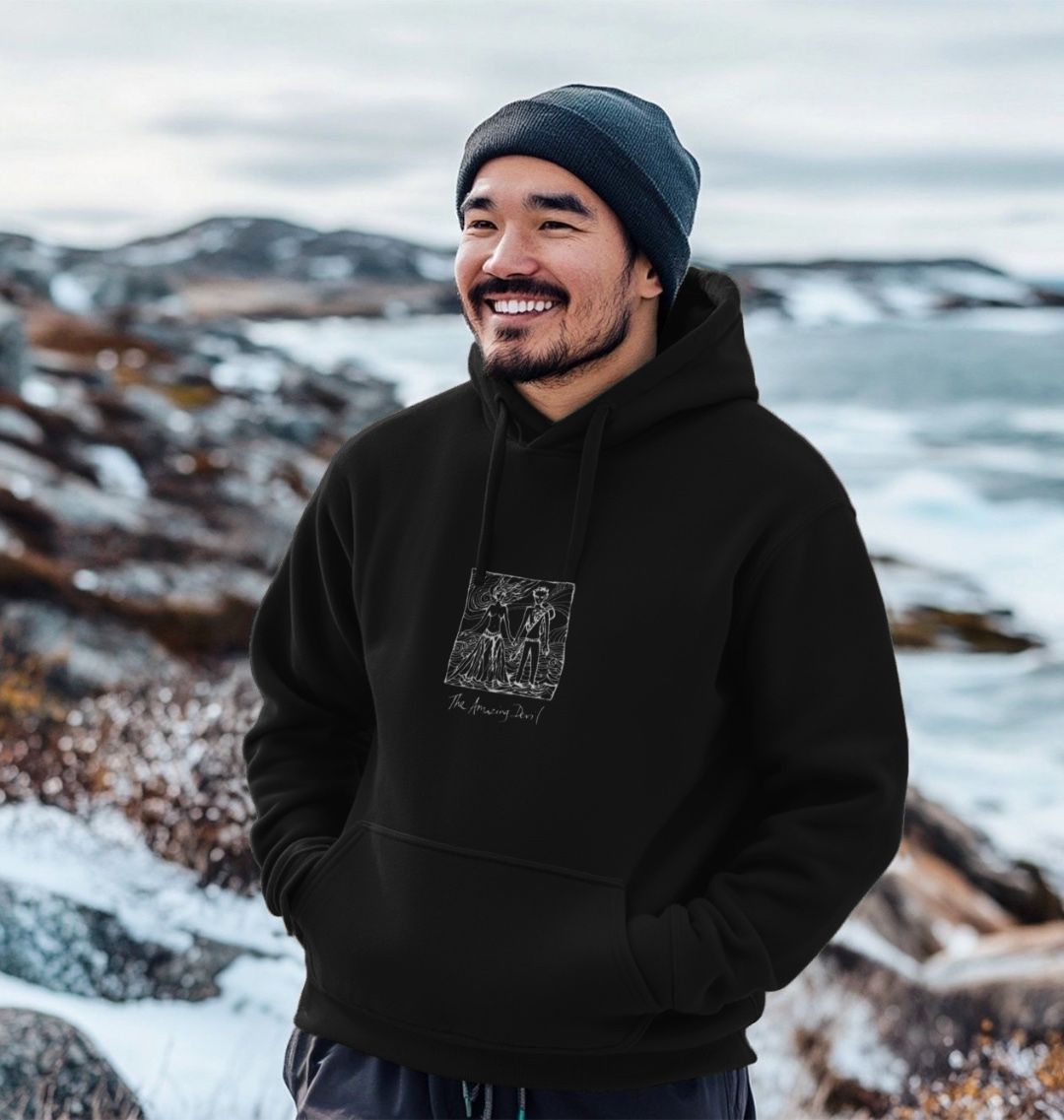 Certified Organic Cotton Fleece Unisex Hoody with Kangaroo Pocket and dropped shoulders. 300g/m2. Wash cool, hang dry. GM free. Not tested on animals. Does not contain animal-derived products. Printed in the UK with low waste printing tech. Made in a renewable energy powered factory audited for a wide range of social and sustainability criteria.