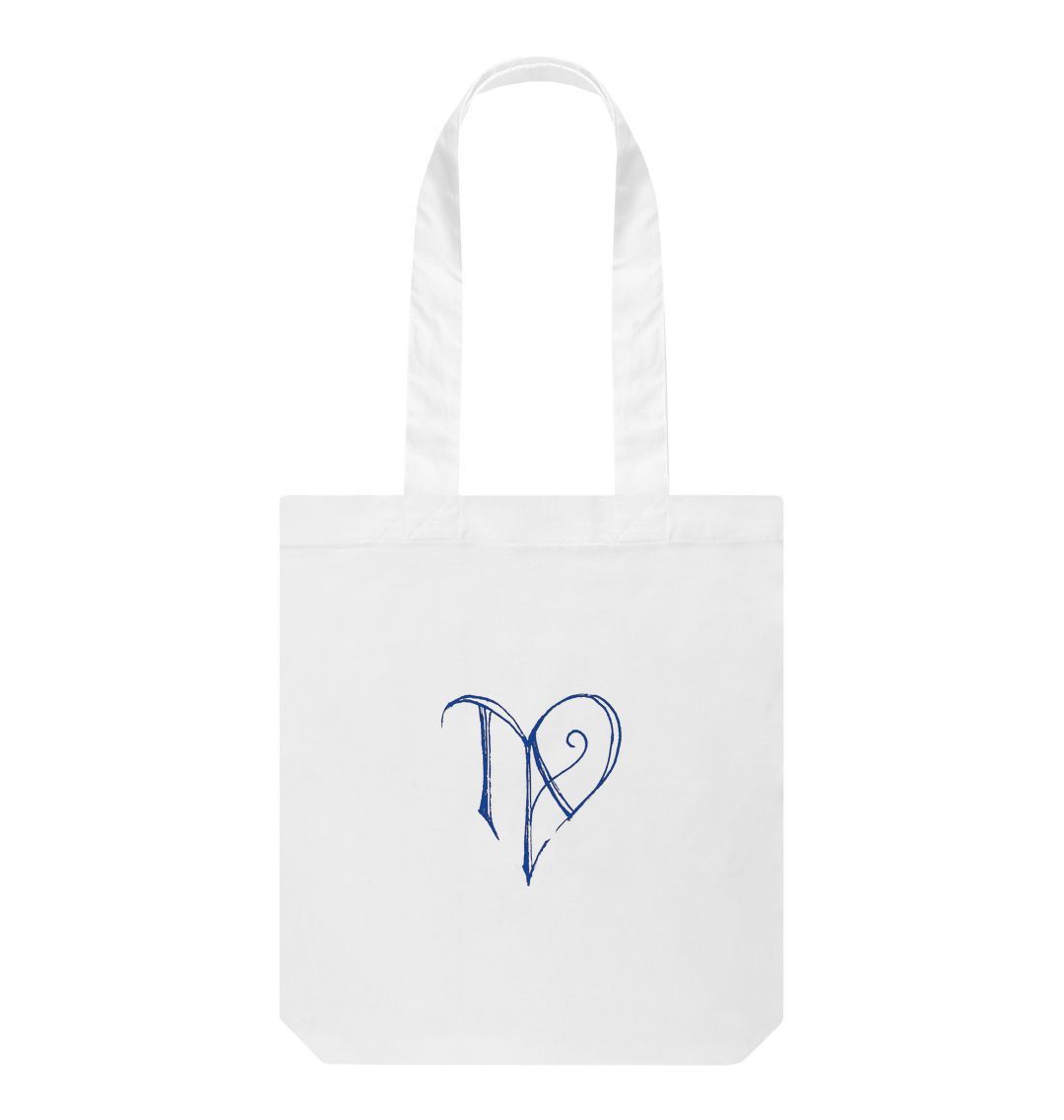 Organic Cotton Tote Bag. Twill Weave (170gsm). 37 x 42 cm (7cm gusset.) Made in India / Designed on the Isle of Wight. Wash Cool, Hang Dry. Double sided print: one side ink drawing, one side TAD logo printed in blue.